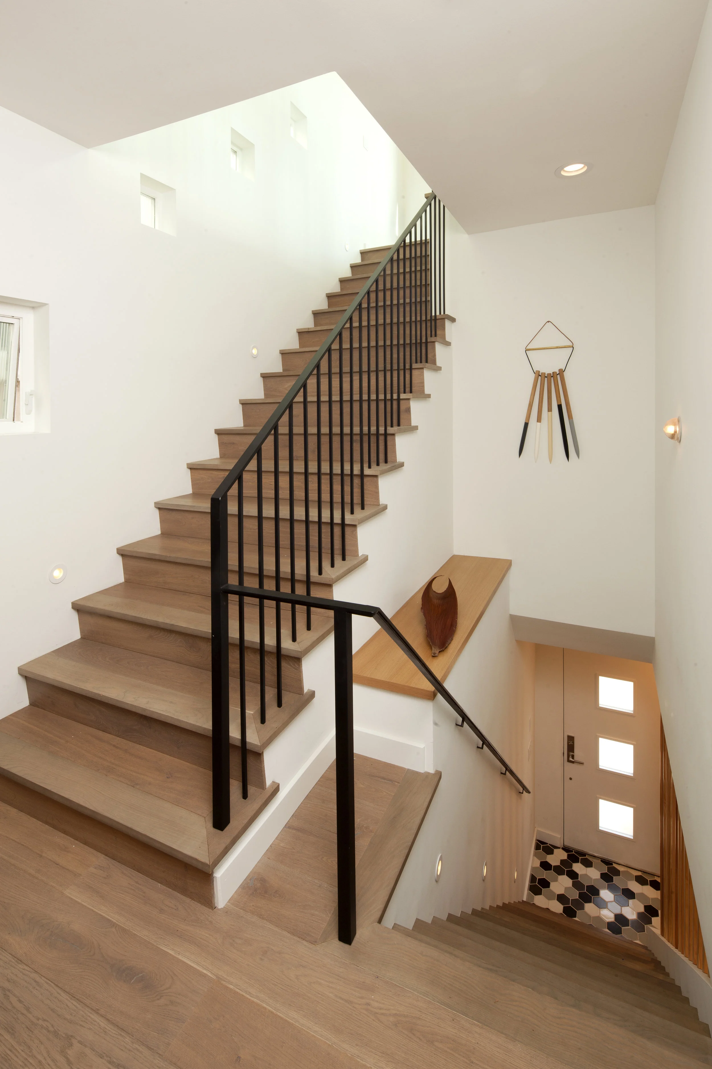 This once outdated townhome built the 1990’s got a whole new look to match the warmth and modernity of life in Manhattan Beach. Studio Zimmermann introduced clean lines, warm wood materials, textures and patterned materials to add some richness to this modern coastal property, a look that will stand the test of time.