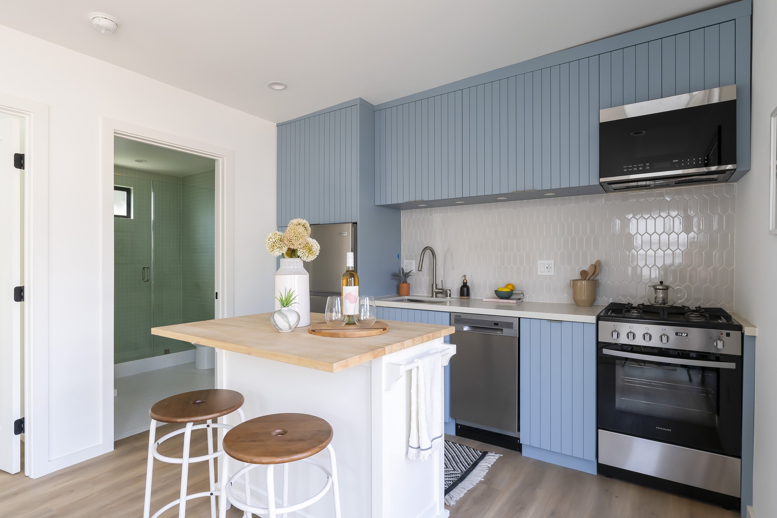 This project involved the comprehensive interior design and landscape vision for a complex of four 1950s California Bungalow-style buildings (seven residential units total). The design maintains a modern, simple aesthetic while incorporating a rich, sophisticated color palette inspired by Pasadena's history.